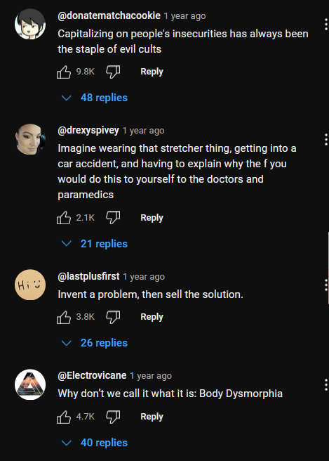 Commenters here front human capacity to look better through sheer hard work and discipline to cushion against this despairing impossibility. This tension between genetic or biologized immutability and disciplined self-labor is one of many contestations centered around looksmaxxing and unattractive life writ large; whether methods of looksmaxxing are mere “coping” mechanisms to avoid acknowledgement of the harsh reality of ugliness or are actual proven interventions that “fix” unattractiveness ground this tension, which is why the overdetermination of medicalized terminologies operate at such a high level within these spaces. Medicine and science can emprirically and provably demonstrate the efficacy of any method and the ground truth of anyone’s appearance, even as science itself can be tested, hypothesized, and falsified.