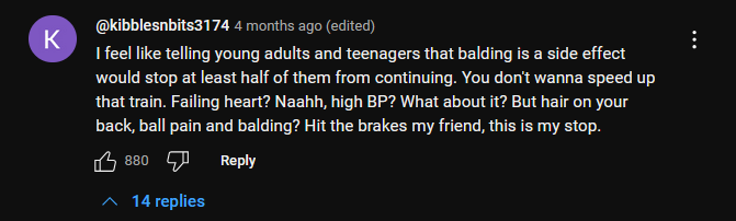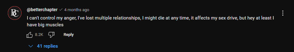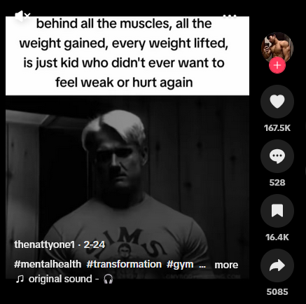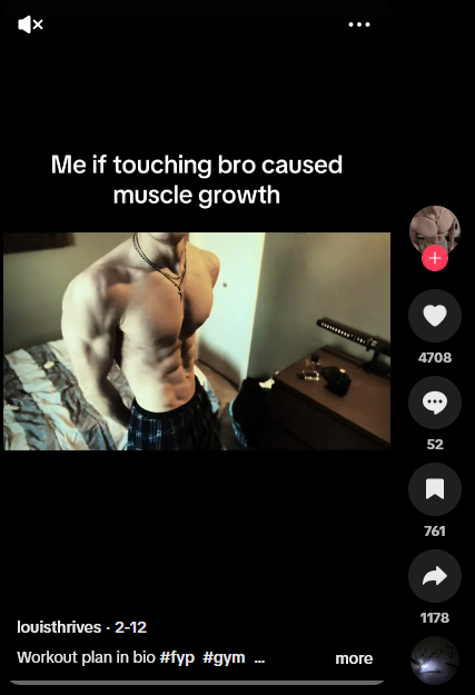 In the above video by @Jesse James West, the supposed “teens” all articulate specific aspects of steroid use that perceptibly contradict this aim to “look better” – undesirable hair growth, premature balding, acne, and “ball cramps” plague their bodies, whilst comments jostle on how these physical side effects should deter others from doing the same thing. Building a visibly muscular body, then, is the key for content creation and inauguration into the throes of the “bodybuilding”/looksmaxxing community; nevertheless for the views and gains, even if it means “poisoning themselves and wearing out their bodies,” 60 but not in ways that remain legible to frameworks of agency and personal choice – it just feels good to flex and get compliments for it.