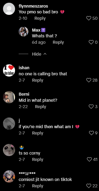 https://www.tiktok.com/@niko.addonisio/video/7468565018439585054?_r=1&_t=ZS-8v1K3dfpOaY; “chopped” = ugly looking; “pmo” = piss me off; “mid” refers to an aesthetic and value judgment of mediocrity, “middling”; “ts” = this or this shit, depending on format and tone; “jit” = young thug, more emphasis on downward age difference ↩︎